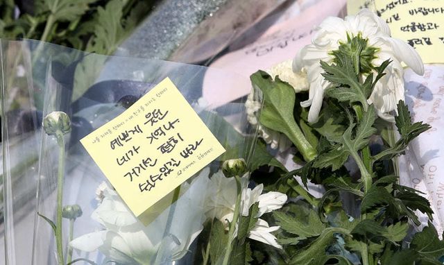 21일 서울 서초구 서이초등학교에 마련된 극단적 선택으로 세상을 떠난 교사의 추모공간에 동료교사의 메모가 붙어 있다.