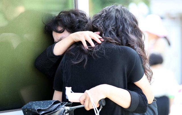 21일 서울 서초구 서이초등학교에서 동료 교사들이 극단적 선택으로 세상을 떠난 교사를 추모하며 눈물을 흘리고 있다. / 이하 뉴스1