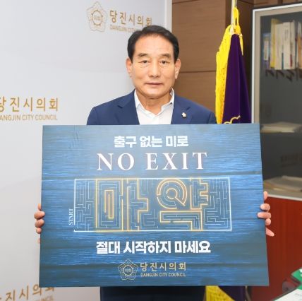 [파이낸셜경제=김윤정 기자] 당진시의회 김덕주 의장이 마약범죄 예방 ‘노 엑시트(NO EXIT)’릴레이 캠페인에 동참했다.