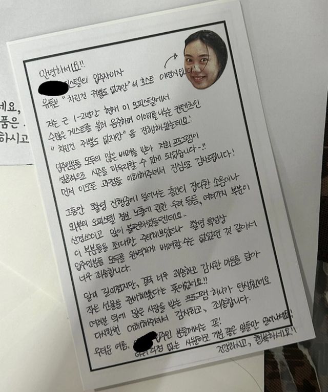 해당 글을 본 누리꾼들은 온라인 커뮤니티 '더쿠'에 "진짜 기특하다", "편지 진짜 정성이다", "헐 스윗하다", "진짜 좋은 사람", "마음이 예쁘다는 게 느껴진다", "제작진도 멋지다" 등에 댓글을 남기며 박수를 보냈다.