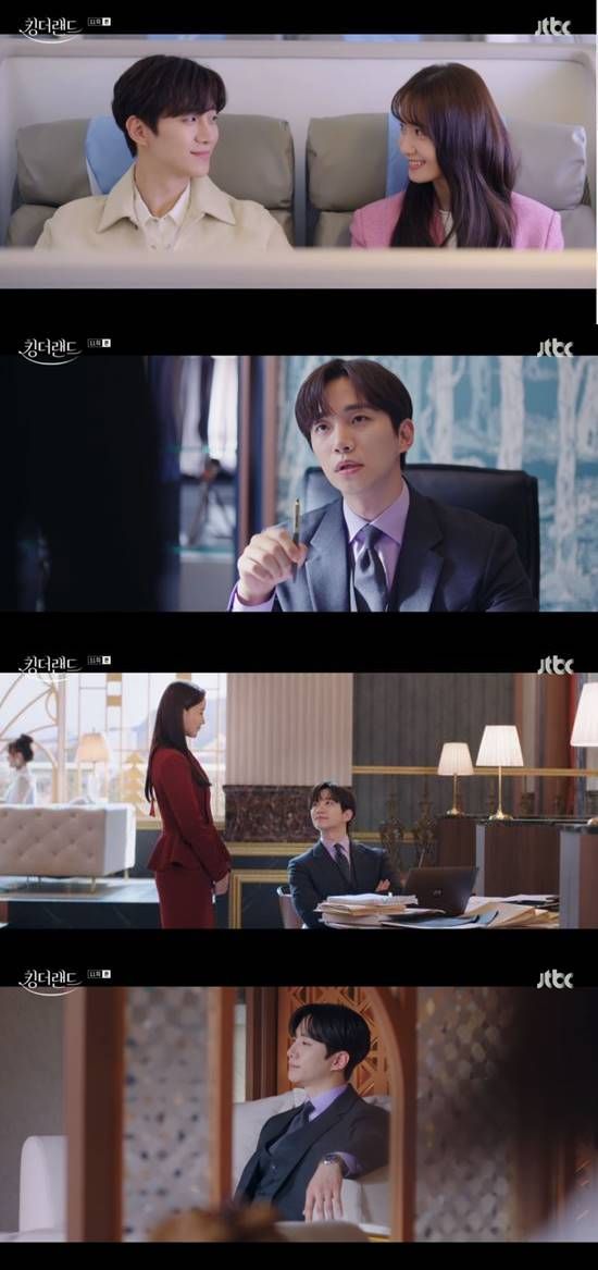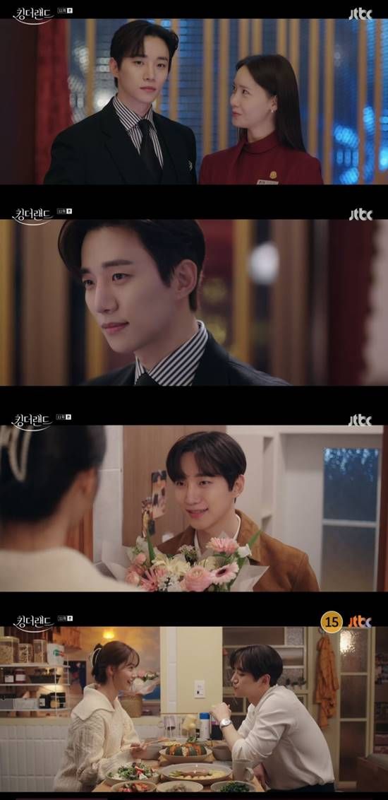 22일 방송한 JTBC 토일드라마 '킹더랜드' 11회에서는 킹호텔 본부장 구원(이준호 분)과 킹그룹 1등 사원 천사랑(임윤아)이 입맞춤을 하는 장면이 전파를 탔다.