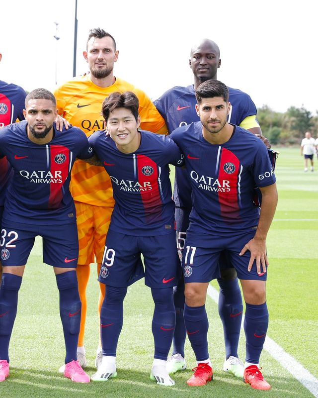 눈에 띄는 건 이강인 옆에 착 달라붙어 있는 네이마르다. 검은색 선글라스를 착용한 네이마르는 이강인 오른쪽에 서서 어깨동무하며 환하게 웃었다. 이강인도 네이마르 옆에서 밝게 미소를 지었다.