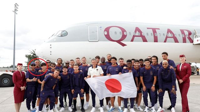 PSG가 올린 사진에는 스폰서 카타르 항공 비행기 앞에서 루이스 엔리케 감독을 포함한 27인의 선수들이 일장기를 들고 있는 모습이 찍혀 있었다.