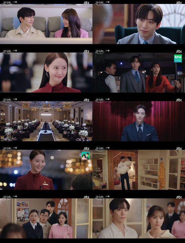 어제(22일) 방송된 JTBC 토일드라마 ‘킹더랜드’(극본 최롬(팀 하리마오), 연출 임현욱) 11회에서는 구원(이준호)과 천사랑(임윤아)이 킹호텔 창립 100주년 기념행사를 성공적으로 마무리하는 모습이 그려졌다. 특히 행사 준비로 바쁜 상황 속에서도 변함없는 사랑을 나누는 두 사람의 미소는 알콩달콩한 설렘을 선사했다.