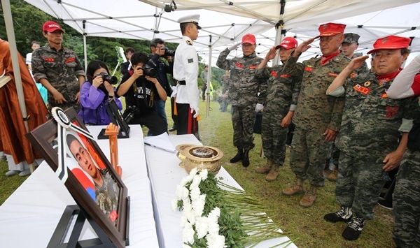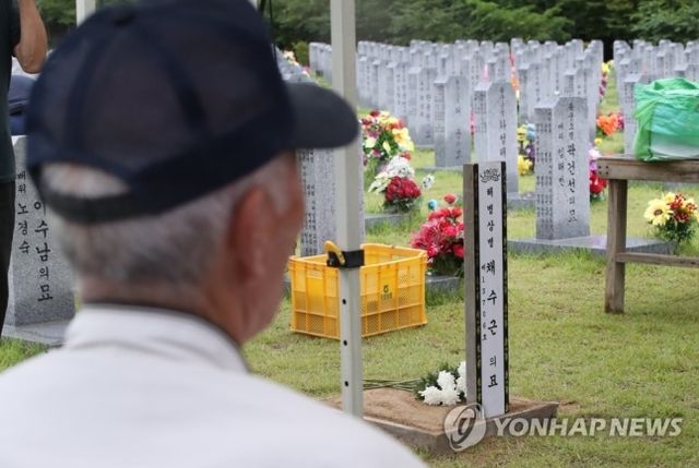 이날 연합뉴스 보도에 따르면 해병대 관계자들과 유가족이 자리한 이곳에 머리가 새하얀 한 노인이 눈에 띄었다.