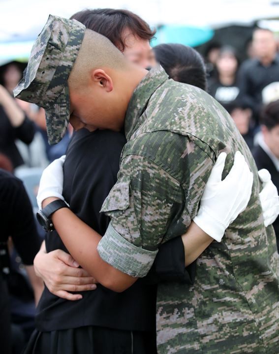 채 상병 어머니는 아들의 영정사진을 연신 어루만지며 "못 보낸다. 내 아들, 널 어떻게 키웠는데..."라며 오열했다. 아들의 동기를 꼭 안고 토닥여주며 눈물을 흘렸다.
