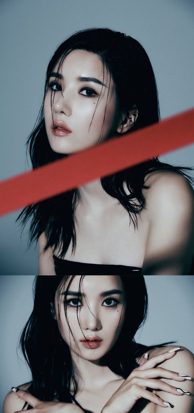 이날 공개된 이미지는 촉촉하게 젖은 흑발에 블랙 톱 의상, 짙은 스모키 메이크업으로 섹시하면서도 강렬한 카리스마를 발산하는 권은비의 모습을 담고 있다.