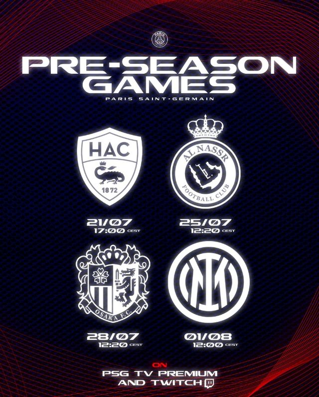 지난 22일 프랑스에서 출국한 PSG는 23일 일본 오사카에 도착했다. 오는 25일 오후 7시와 28일 오후 7시에 각각 알나스르(사우디아라비아)와 세레소 오사카(일본)와 일전을 치르고, 8월 1일 오후 7시엔 도쿄에서 인터 밀란(이탈리아)과 평가전을 치를 예정이다.