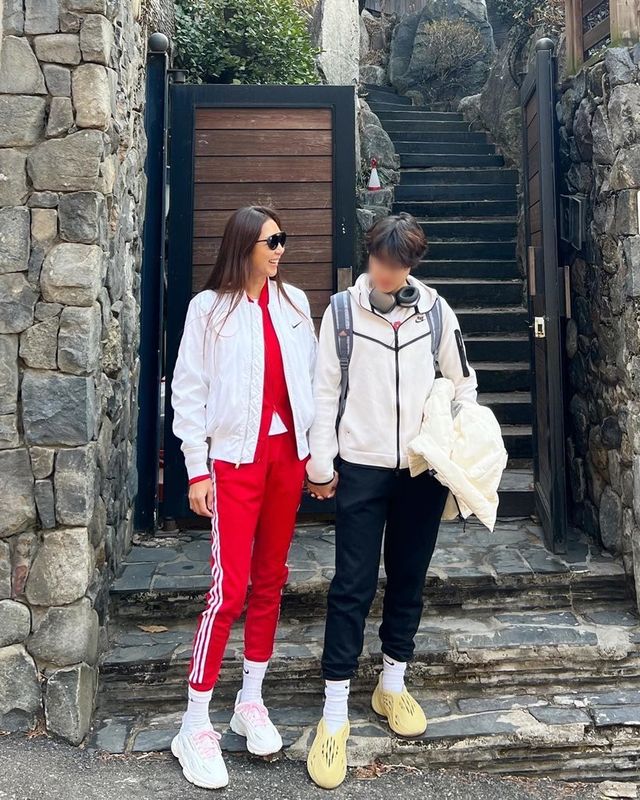 이어 "첫째 아들 윤라익, 둘째 딸 윤라임"이라는 해시태그와 함께 "전미라 유전자 승", "오르막에서 찍어서 길게 나옴", "얘들이 나 닮아 다리 2m"라는 해시태그를 덧붙이기도 했다.