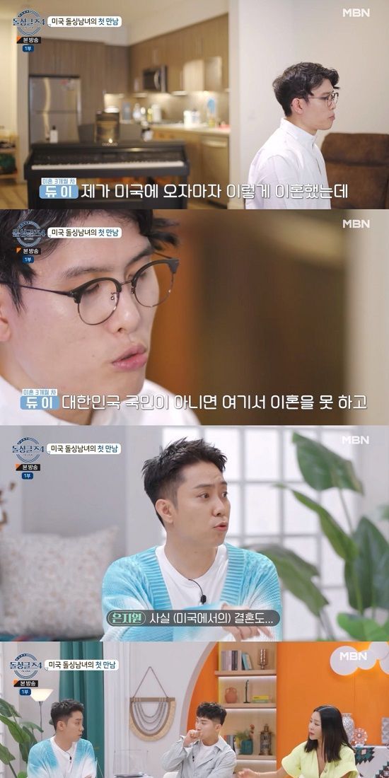 그는 "제가 미국에 오자마자 이혼 결심을 했는데 이혼하는 방법을 모르는 거다. 영사관을 갔더니 '한 명이 한국 국민이 아니네요? 여기서 이혼을 못하고 변호사를 통해서 해야 한다'라고 하더라. 회의감이 들었다. 우리가 왜 이런 생활을 유지하고 있나'라고 말했다.