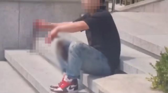 온라인에 확산한 신림동 칼부림 피의자 조 씨의 체포 직전 모습이다. / 온라인 커뮤니티