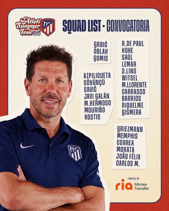 아틀레티코는 25일(이하 한국시간) 구단 채널을 통해 ‘한국-멕시코-미국’으로의 프리시즌 투어에 나설 27인 명단을 게시했다.