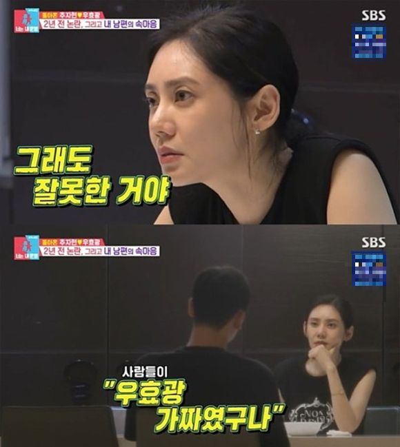 또, 당시 논란이 불거졌을 때 우효광은 해명하려 했지만 추자현이 막았었다는 것도 전해졌다. 추자현은 "당신은 해명하고 싶었지만 내가 못 하게 한 거 기억나? 이미 잘못된 동작을 했기 때문"이라고 이야기하면서도 "당신에게 고마운 것도 있다. 2년 전 이 일이 터지고 마음고생 많았을 텐데 도망가지 않고 당신은 직면했다. 나도 그 상황을 받아들였고 그게 되게 멋졌다"라고 고마움을 표했다.