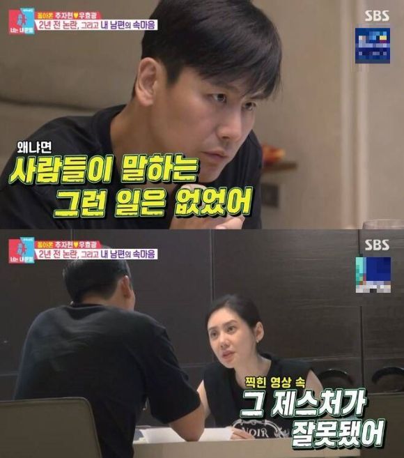 이에 추자현은 "그 당시에 (우효광의) 제스처가 잘못됐다. 인정하지? 그 동작이 잘못된 건 맞아"라며 우효광이 한 여성을 자신의 무릎에 앉혔었던 일에 대해 말하자, 우효광은 "그런 쪽으로 생각하지 않았으니까"라고 설명했다.