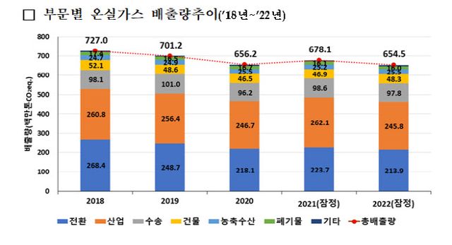 환경부 소속 온실가스종합정보센터는 내년 말 예정된 2022년 국가 온실가스 배출량 통계 확정에 앞서, 이 같은 내용의 2022년 국가 온실가스 잠정 배출량을 공개한다고 25일 밝혔다.