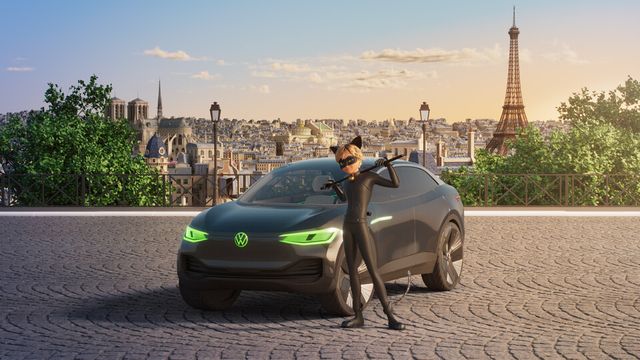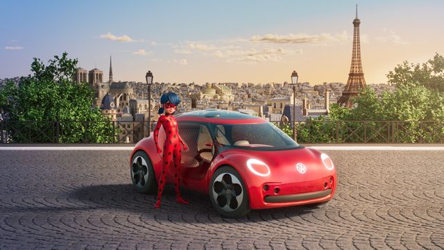 이번 작품에 어울리도록 재디자인된 미래적인 스타일의 폭스바겐 ID.패밀리는 극 중 주인공들의 차량으로 나오며 중요한 역할을 한다. ‘레이디버그(Ladybug)’는 폭스바겐의 상징적 모델 ‘비틀(Beetle)’의 전기 컨셉트카를, ‘블랙캣(Cat Noir)’은 전기 SUV ID.4를 운전하고, 럭셔리 세단 컨셉트카인 ID.VIZZION은 세련된 스타일리스트 ‘가브리엘 아그레스트(Gabriel Agreste)’의 차로, 아이코닉한 ID.버즈는 ‘톰(Tom)’의 배송 차량으로 등장한다.