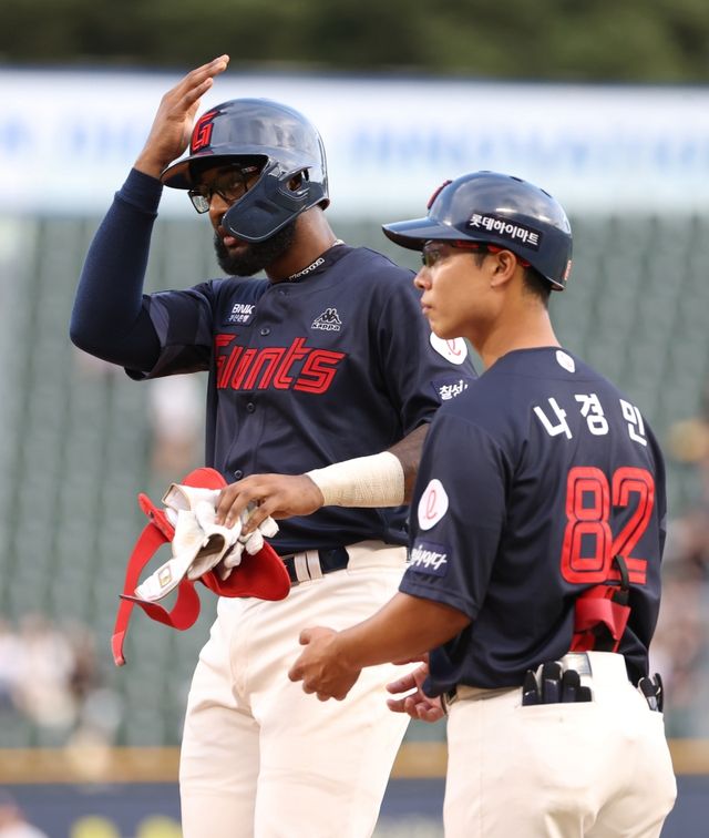 (엑스포츠뉴스 잠실, 유준상 기자) 경기 초반에 벌어진 격차를 극복하지 못한 롯데 자이언츠가 3연패 수렁에 빠졌다. 순위도 6위로 추락했다. 그나마 외국인 타자 니코 구드럼의 3안타 활약에 위안을 삼았다.