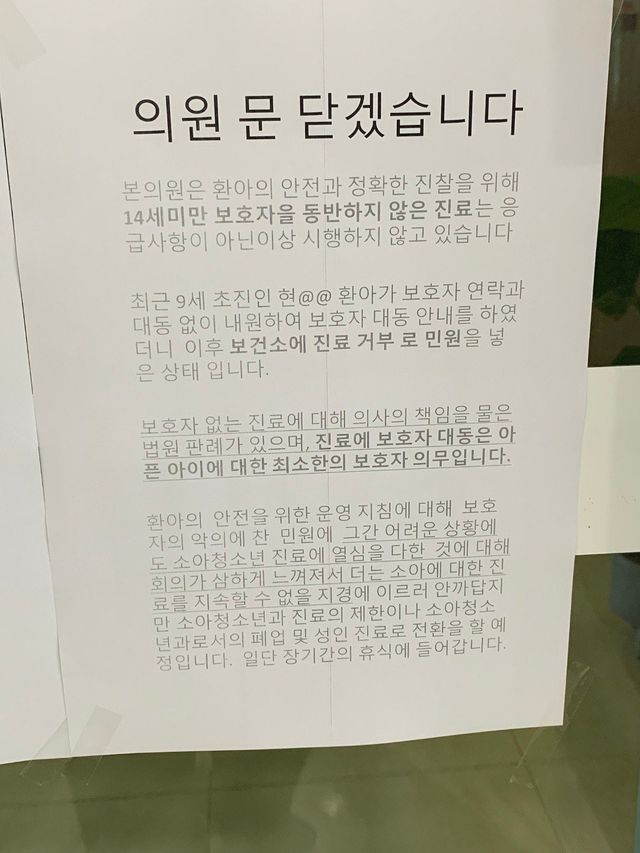 앞서 지난 24일 폐업을 선언한 소아청소년과 전문의는 직접 온라인 커뮤니티에 글을 게재했다.