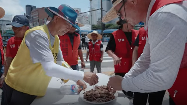 대한육견협회 회원들이 시위를 벌이며 개고기를 시식하고 있다. <사진=유튜브 채널 '1q60 일큐육공' 캡처>