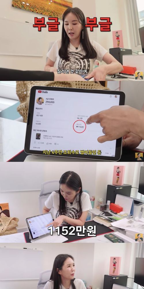 장영란이 태블릿 화면을 가리키며 이게 어떤 거냐고 묻자, PD는 "지난 4주간 조회수로 벌어들인 돈이다"라며 말했다.