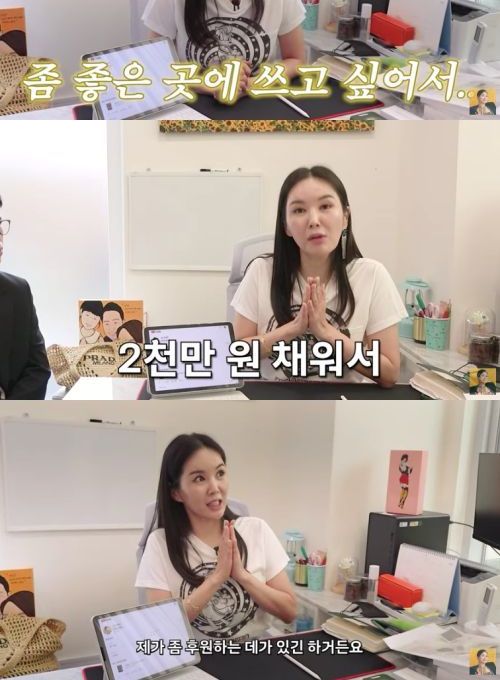 더불어 장영란은 "1,100만 원 정도니까, 제가 돈을 조금 더 보태서 2,000만 원을 채워서 후원하던 곳에 하고 싶다"라고 전해 놀라움을 자아냈다.