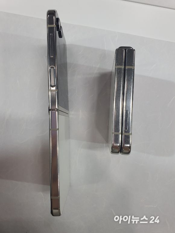 접혔을 때의 두께 또한 전작 대비 얇아져 한결 슬림해졌다는 인상을 받았다. 실제 접었을 때 플립5의 두께는 15.1mm로, 전작의 가장 두꺼운 부분 대비 약 2mm가량 줄어 확실히 그립감과 휴대성이 좋았다.