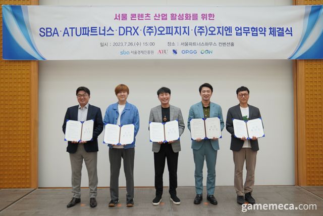 서울시와 서울경제진흥원은 26일, 서울 콘텐츠산업 진흥 및 e스포츠 활성화를 위해 ATU파트너스, DRX, 오피지지, 오지엔과 업무협약을 체결했다.