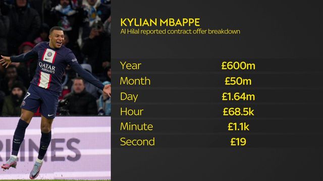다만 사우디 측은 음바페를 단기 영입해 활용할 것으로 보인다. 음바페의 유일한 희망 팀이 레알 마드리드이기 때문에 알 힐랄은 1년 만 그를 활용하고 그다음 시즌인 2024/25시즌을 앞두고 그를 레알로 보내는 방향으로 선수를 설득했다.