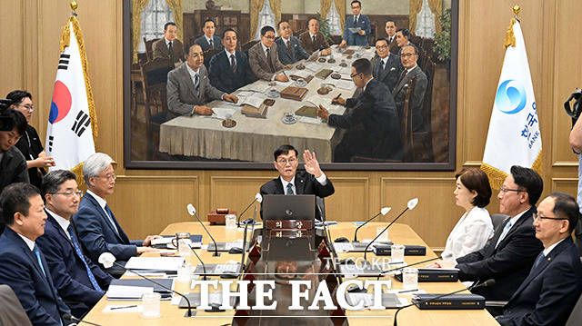 한미 기준금리 격차가 역대 최대인 2%포인트로 벌어지면서 한국은행의 기준금리 인상 압박도 커질 전망이다. 사진은 지난 13일 이창용 한국은행 총재가 서울 중구 한국은행에서 열린 금융통화위원회를 주재하고 있다. /사진공동취재단