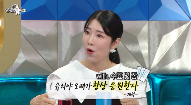 그러면서 "유재석 씨를 만나서 젠을 소개해 줬는데 다음 날 이지혜를 통해 유재석의 손 편지를 전달받았다. '유리야, 오빠가 항상 응원한다'면서 수표가 들어 있었는데 너무 큰 돈이라 깜짝 놀랐다. 돈 때문이 아니라 따뜻한 마음이 너무 고마웠다. 그때부터 텔레비전에 유재석 씨가 나오면 '유느님'이라고 부른다"며 치켜세웠다.