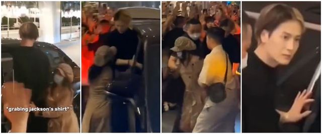 그룹 갓세븐(GOT7) 멤버 잭슨(Jackson)에게 한 여성 팬이 스킨십을 시도하는 모습이 포착됐다.