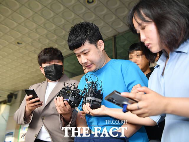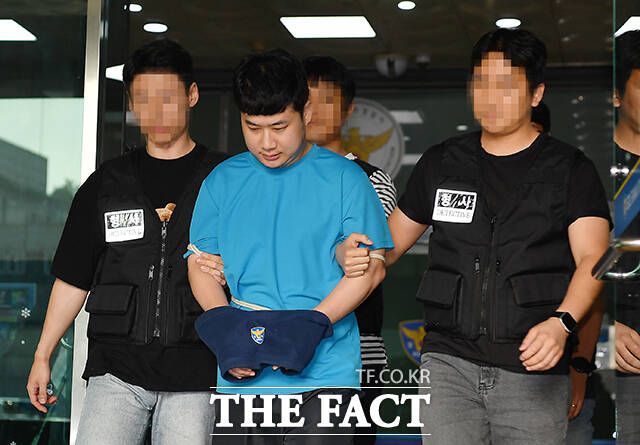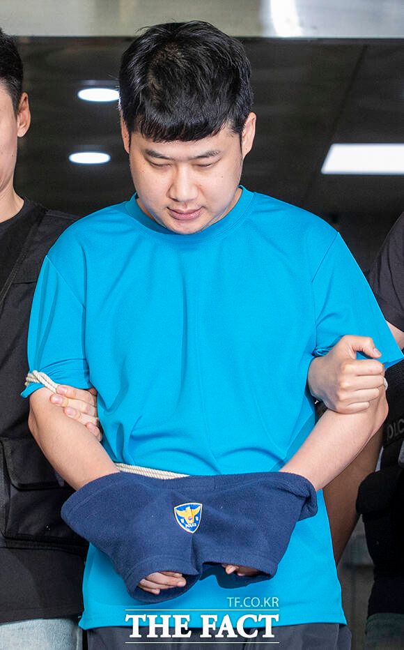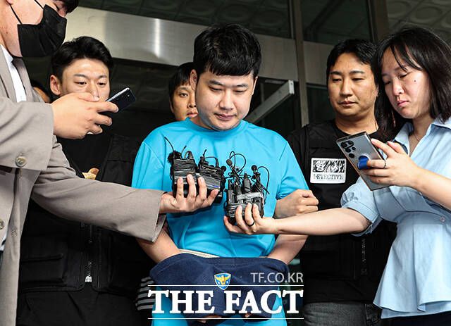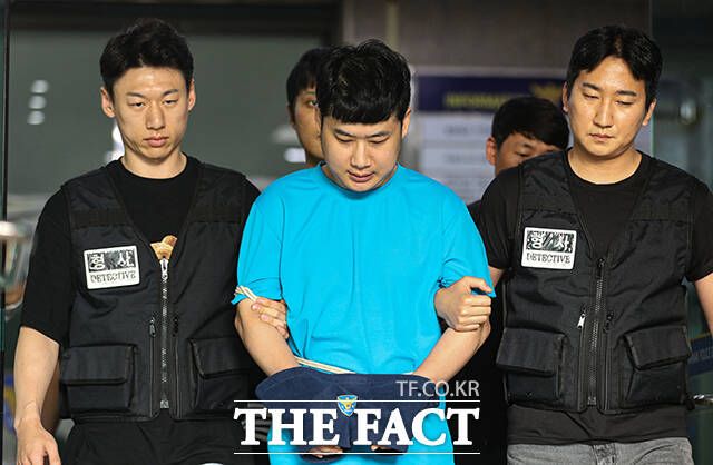 [더팩트ㅣ박헌우 기자] '신림역 흉기난동' 사건 피의자 조선이 28일 오전 서울 관악구 관악경찰서에서 서울중앙지방검찰청으로 송치되고 있다.