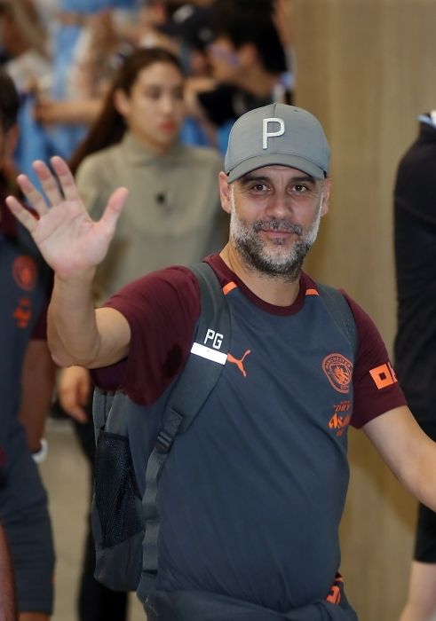 프리시즌 투어에 나선 맨체스터 시티(맨시티) 펩 과르디올라 감독이 27일 오후 인천국제공항을 통해 입국해 팬들을 향해 손 인사를 하고 있다.