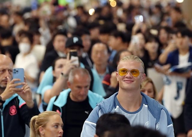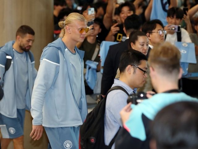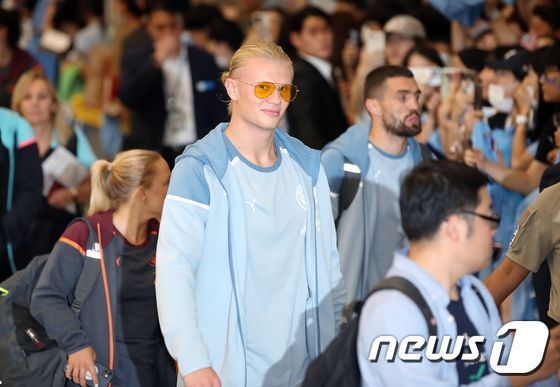 프리시즌 투어에 나선 맨체스터 시티(맨시티) 엘링 홀란드가 27일 오후 인천국제공항을 통해 입국하고 있다.