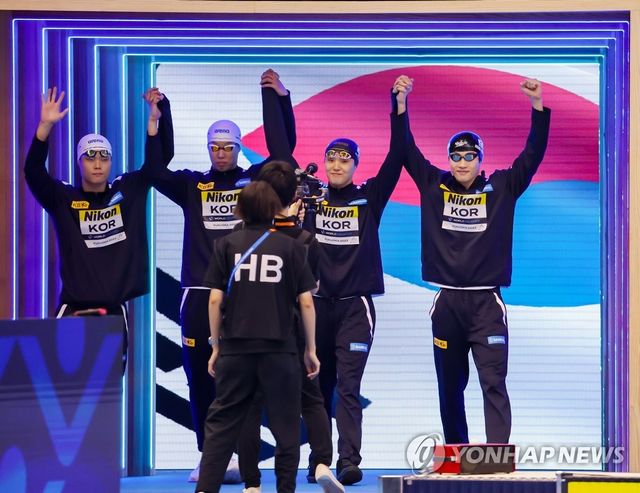 다만 이번 계영 대표팀의 궁극적인 목표인 올림픽 메달 획득을 위해선 갈 길이 여전히 멀다는 점도 확인했다. 영국, 미국, 호주 등 전통의 수영 강국들이 한국 못지 않게 발전하고 있어서다. 이번 후쿠오카 세계선수권 남자 계영 800m 결승은 영국이 6분59초08로 금메달, 미국이 7분00초02로 은메달, 호주가 7분02초13으로 동메달의 영광을 안았다.
