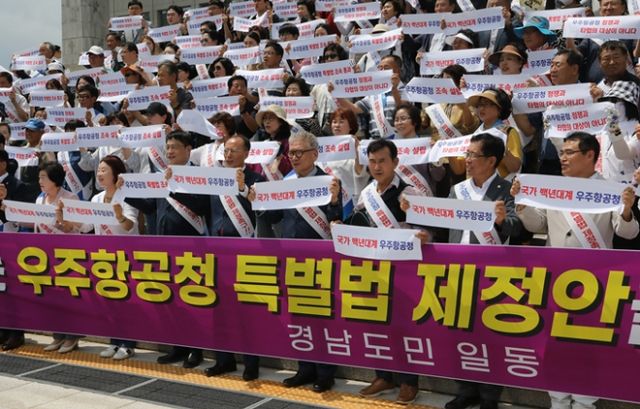 장제원 국회 과학기술정보방송통신위원회 위원장은 더불어민주당이 8월 내 우주항공청 특별법을 통과시켜 준다면 그토록 원했던 과방위원장직에서 사퇴하겠다고 배수진을 치는 등 국민의힘과 정부가 총력전에 나섰지만 더불어민주당의 반대로 난항에 부딪친 상태.