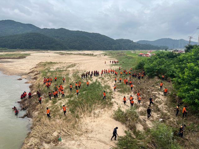 29일 수색당국에 따르면 소방과 군·경 수색당국은 남은 실종자 2명을 찾기 위해 헬기 3대와 드론 13대를 내성천 일대에 띄워 수색중이다. 특히 간방교-미호교 구간에 군·경찰 병력 205명과 수색견 11마리, 드론 1대를 동원해 구조작업을 펼치고 있다.