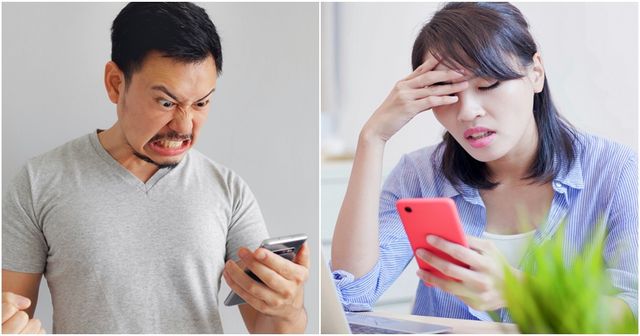 스마트폰을 하며 분노하고 있는 사람들 (참고 사진) /Rachata Teyparsit·aslysun-shutterstock.com