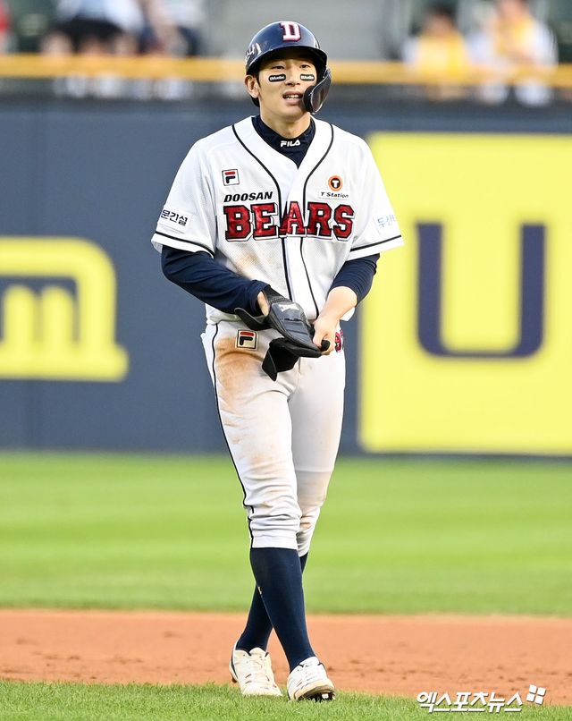 (엑스포츠뉴스 잠실, 유준상 기자) 두산 베어스가 잠실 라이벌 LG를 상대로 쓰라린 완패를 당하며 고개를 숙였다. 내용과 결과 모두 잃은 게 많았지만 외야수 김태근의 활약은 작은 위안이 됐다.