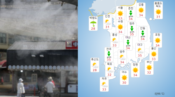 이어 "소나기가 내리는 곳에서는 일시적으로 기온이 내려가겠으나, 소나기가 그치면 다시 기온이 빠르게 올라 무더워지겠다"며 "당분간 도심지와 해안지역을 중심으로 열대야가 나타나는 곳이 많겠으니 건강관리에 유의해야 한다"고 했다.