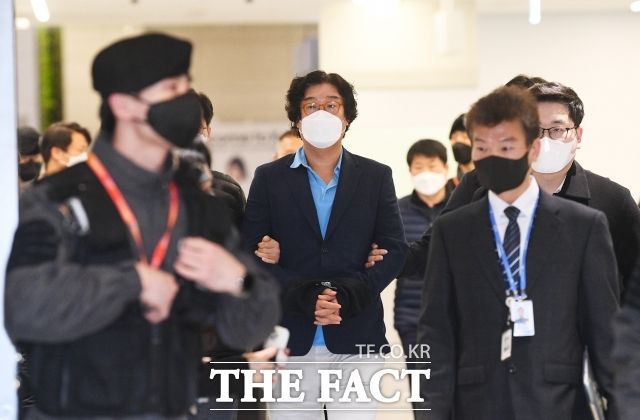 더불어민주당이 검찰이 쌍방울 김성태 전 회장의 주가조작 혐의에 대해 '봐주기 기소'를 했다고 주장했다. 사진은 지난 1월 해외 도피생활 중 태국에서 체포된 김성태 전 쌍방울그룹회장이 인천국제공항을 통해 송환되고 있는 모습. /이동률 기자