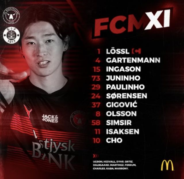 미트윌란은 4-2-3-1 포메이션을 가동했다. 조규성, 심시르, 이삭센, 올슨, 기고비치, 옌센, 파울리뉴, 주니뉴, 잉가손, 가르텐만, 로슬이 출격했다.