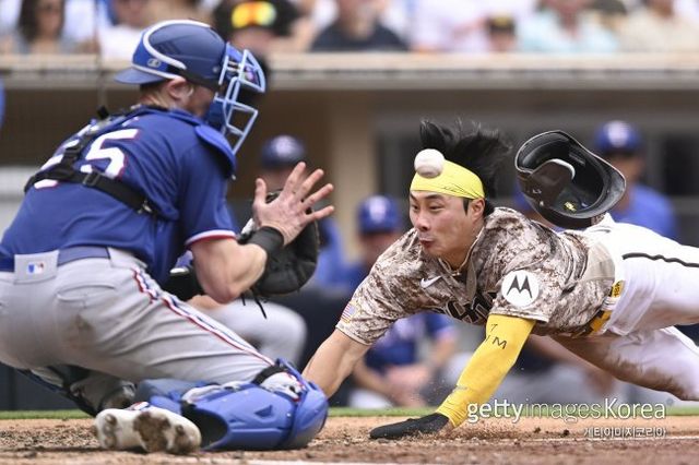 김하성은 오른쪽 어깨에 통증을 호소하면서도 슬라이딩 이후 다시 손으로 홈을 찍는 모습을 보여줬다. 주심의 판정은 세이프였다.