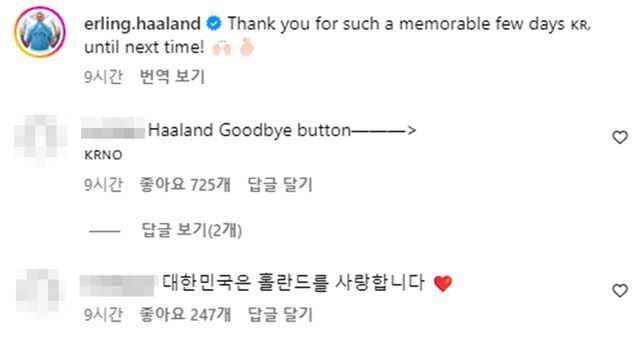 한국 팬들에게 감사 인사 전한 엘링 홀란드/ 엘링 홀란드 인스타그램