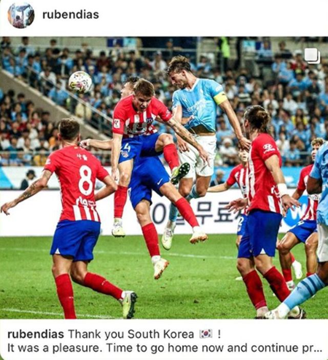 이날 골을 기록한 맨시티 후벵 디아스는 인스타그램을 통해 "감사합니다. 대한민국! 즐거웠다. 이제 집으로 돌아가 시즌 첫 결승 경기를 준비하겠다"고 팬들에게 감사 인사를 전했다.