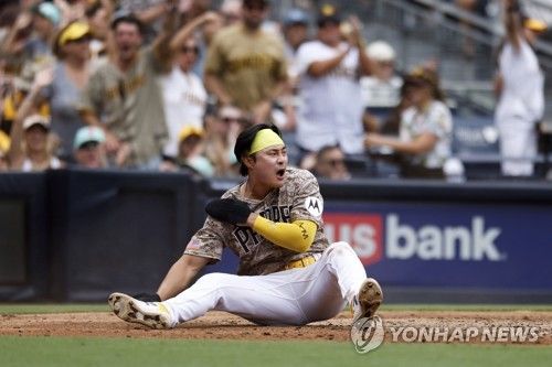 이후 소토의 볼넷과 마차도의 안타로 3루까지 이동한 김하성은 1사 만루에서 잰더 보가츠의 중견수 뜬공 때 태그업을 시도, 홈까지 내달렸다. 결과는 세이프. 그런데 홈으로 들어온 김하성이 한동안 일어나지 못했다. 헤드퍼스트 슬라이딩을 한 뒤 오른쪽 어깨에 통증을 느꼈다. 결국 트레이너가 나와 김하성의 몸 상태를 체크했고, 4회초 시작에 앞서 매튜 배튼과 교체됐다.