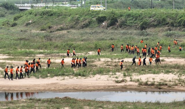 보문교-고평교 구간에 군·경찰 174명과 수색견 4마리, 드론 1대를 투입했다. 또 고평교-오천교 구간에는 소방 등 14명, 탐지견 6마리, 보트 1대, 굴삭기 2대가 투입됐다.