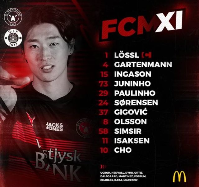 미트윌란은 3-4-3 포메이션으로 시작했다. 조규성, 구스타프 이삭센, 아랄 심시르, 파울리뉴, 크리스토페르 올손, 아르민 기고비치, 올리버 쇠렌센, 주니뉴, 스베리르 잉기 잉가손, 스테판 가르텐만, 요나스 뢰슬이 출격했다.