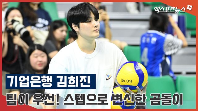 (엑스포츠뉴스 구미, 김한준 기자) 30일 오후 경북 구미 박정희체육관에서 열린 '2023 구미·도드람컵 프로배구대회' 흥국생명과 IBK 기업은행의 경기, 기업은행 김희진이 선수들의 웜업시간에 스텝으로 변신해 훈련을 도와주고 있다.