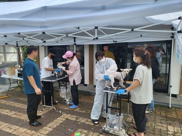 반려동물 친화 도시 만들기 프로젝트 봉사단은 지난 4월에도 미용과 목욕 봉사를 진행했다.